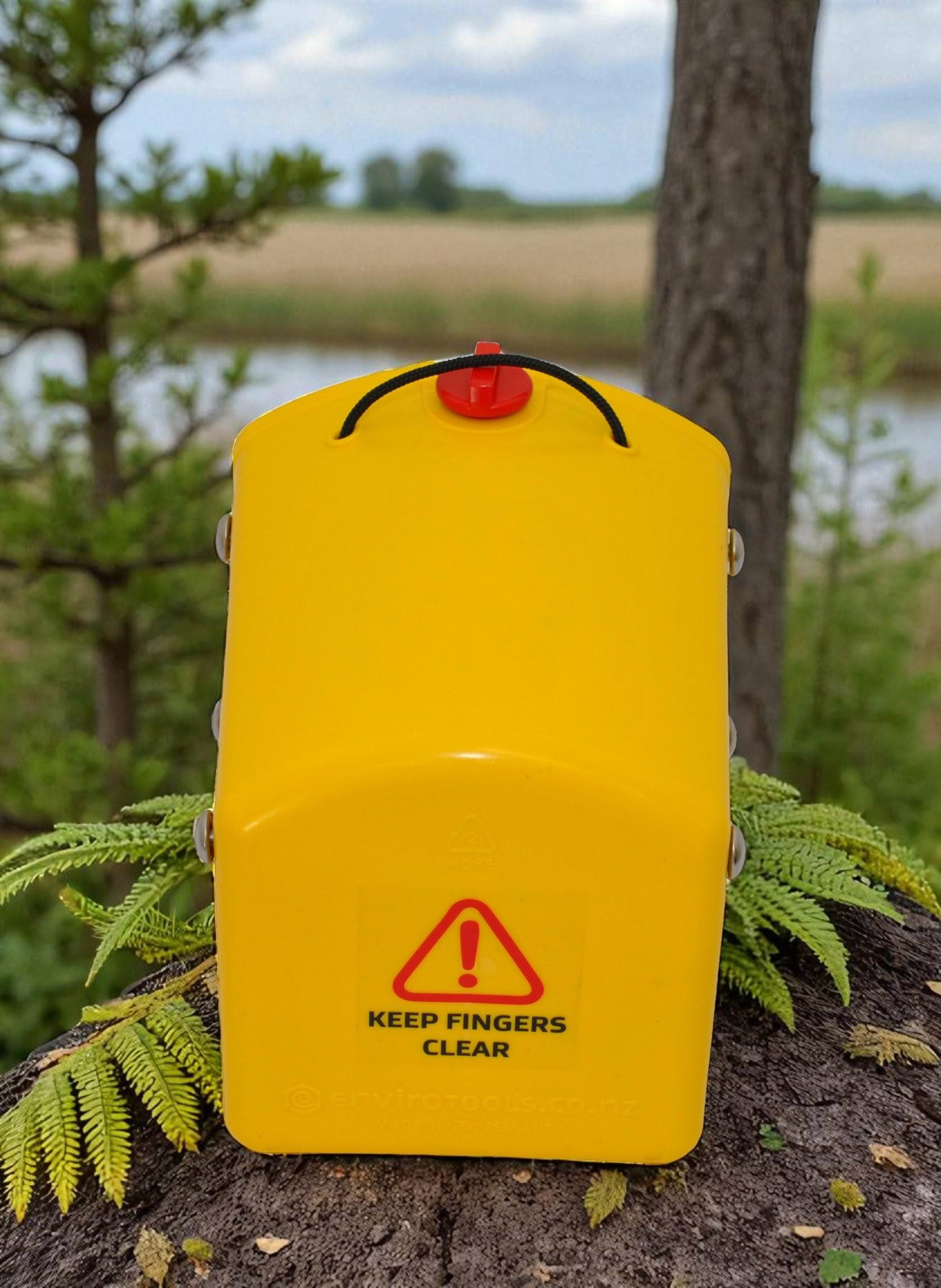 Take the proven mechanical system of a Timms trap and optimise it with sturdier components. And then mount it on a tree. That’s your Flipping Timmy possum trap! Quicker, easier, and more versatile.