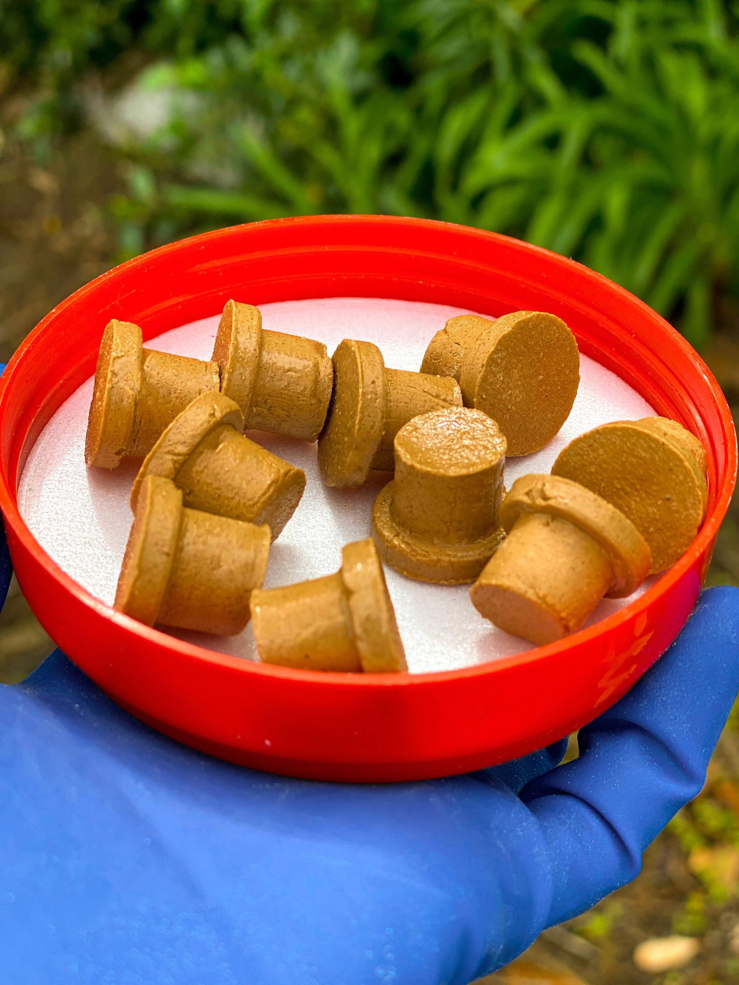 The rat lures are cylindrical and covered with an umbrella shaped design to fit perfectly into a range of traps.